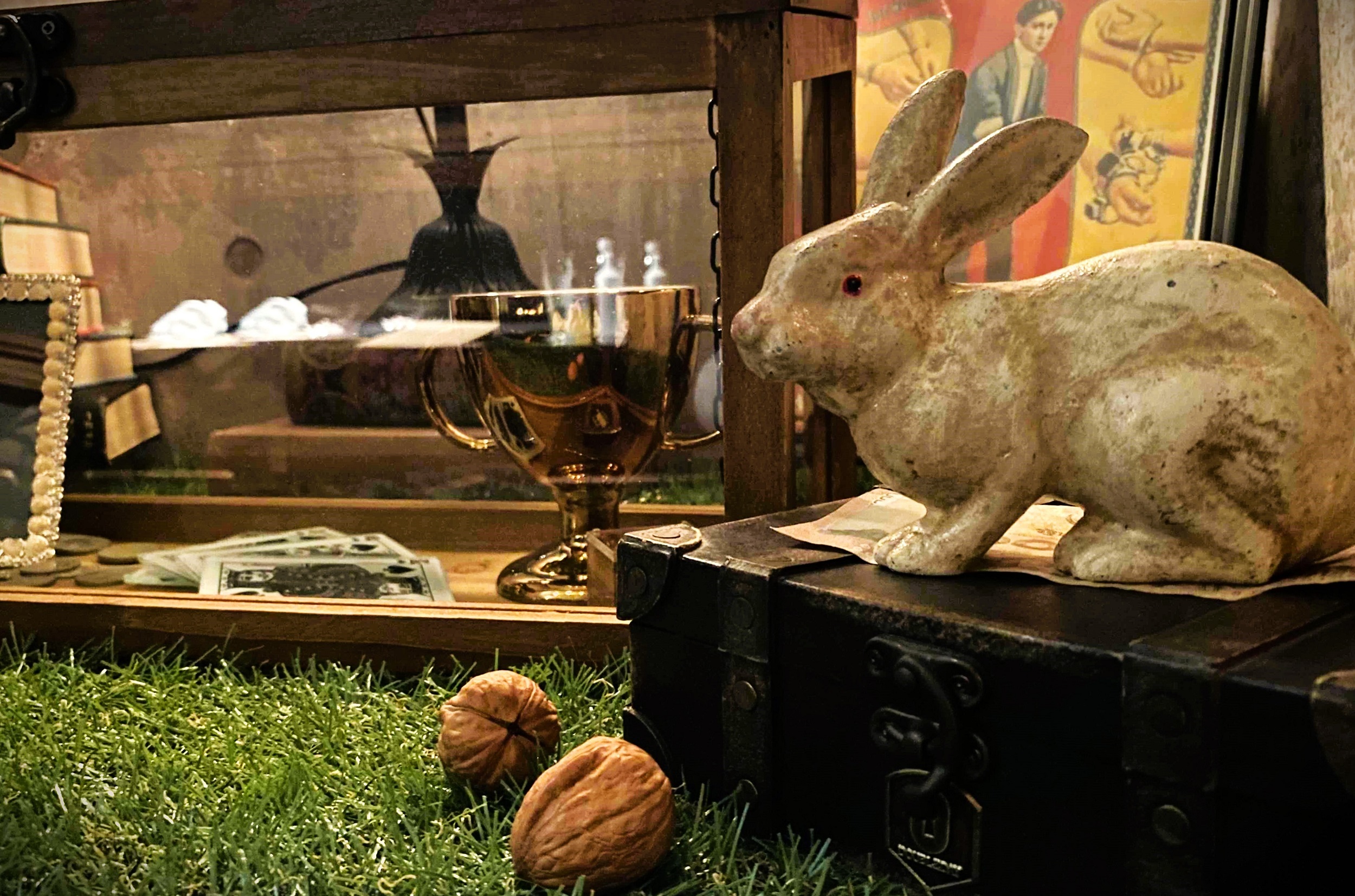 傍らに鎮座する白ウサギが不思議な時間旅行へと誘います。