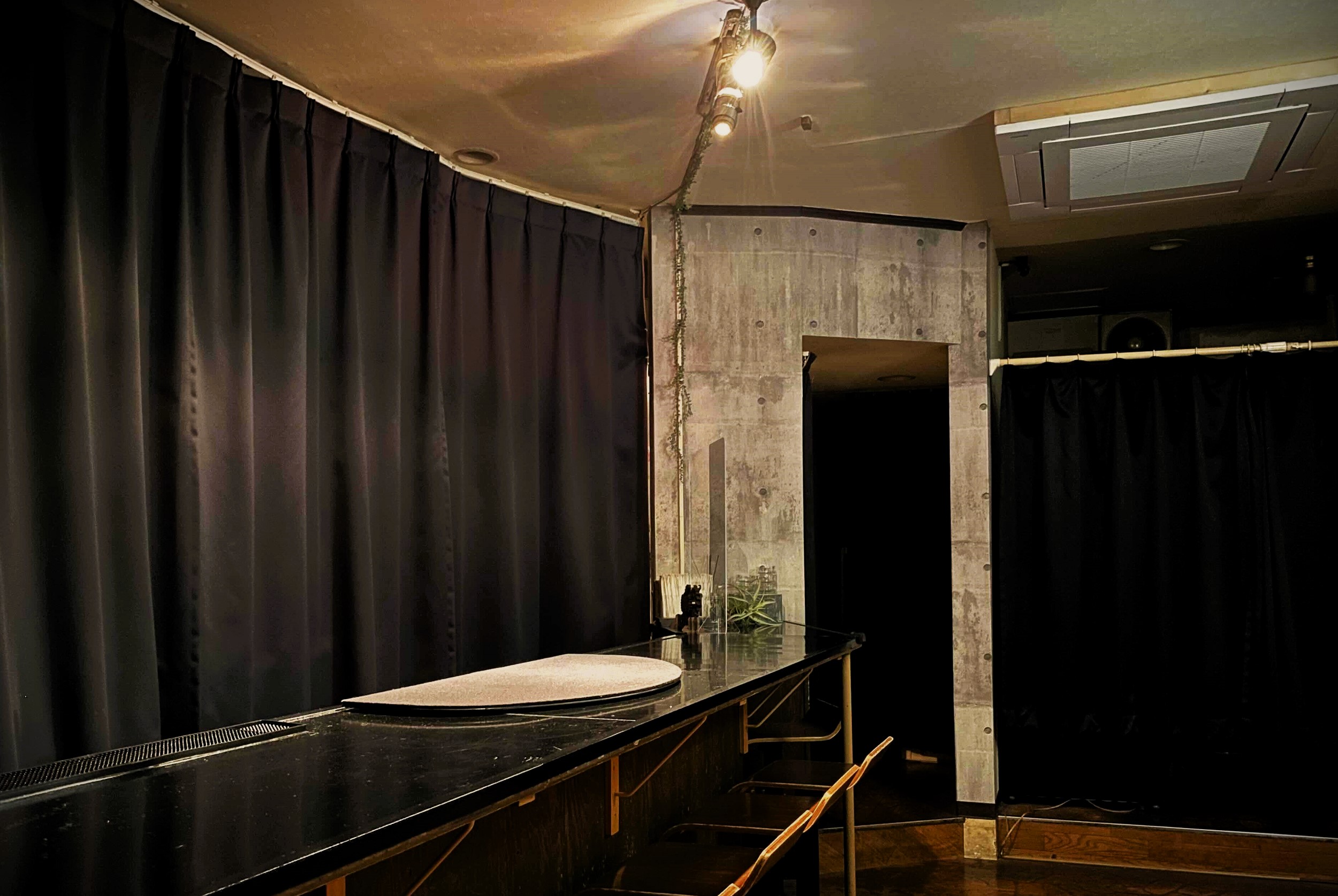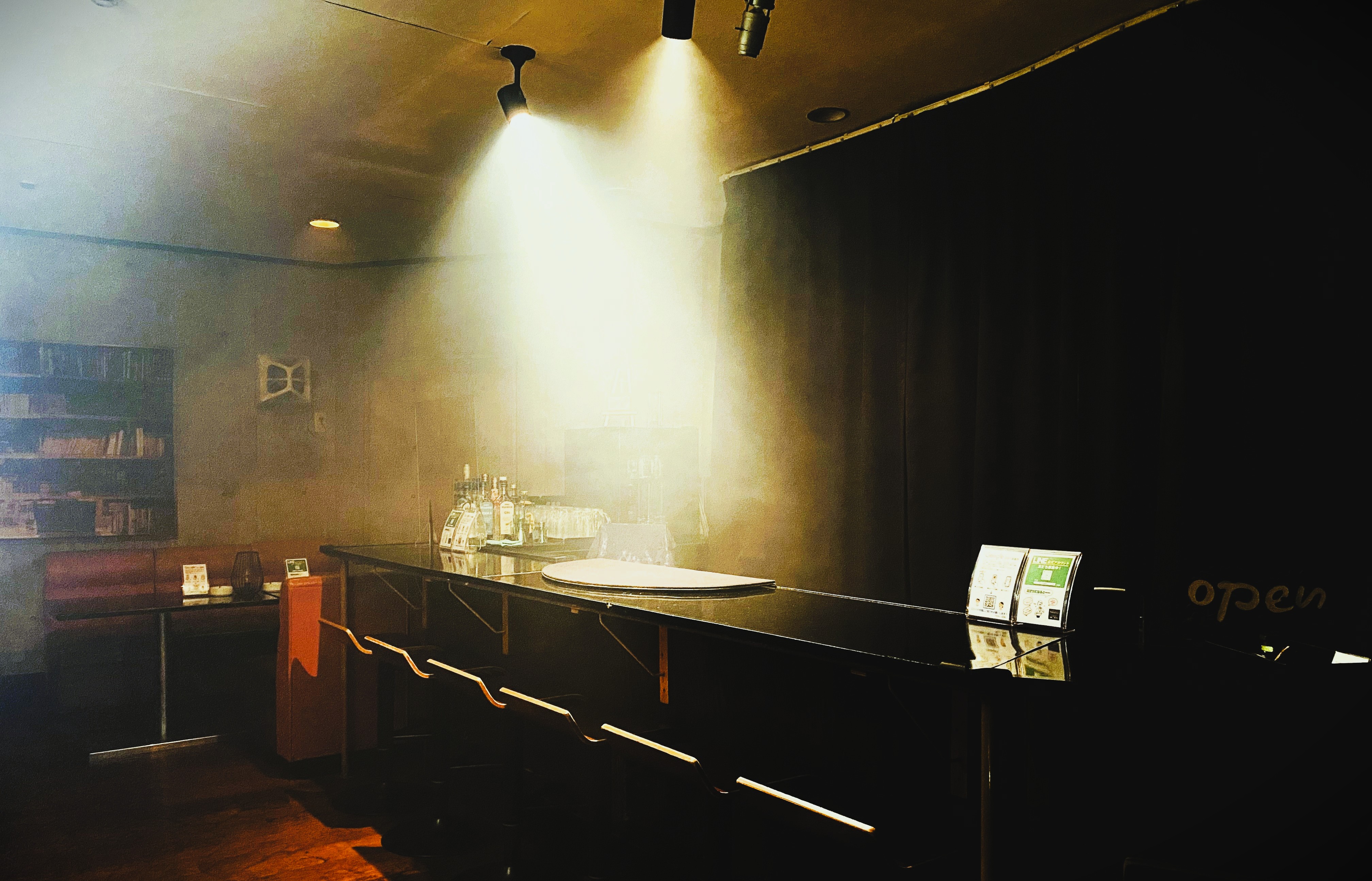 バーにもかかわらずボトル類が背後に見えないように配置されたレイアウトは、ショーに没入していただくためにデザインされた、他のそれらとは一線を画す独特な空間です。
